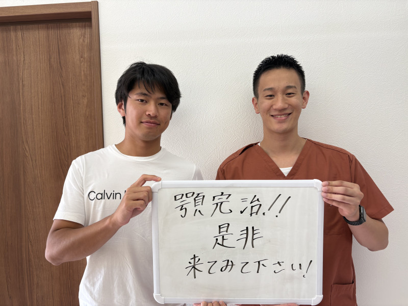 Q、同じような症状でお悩みの方にメッセージをお願いします。 A、同じように顎関節症の症状で悩まれている方は是非一度施術を受けてみても良いかなと思います。