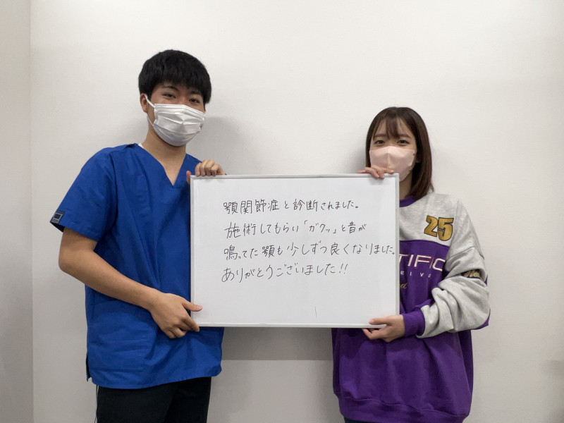 「施術をしてもらい顎関節の『ガクッ』と鳴っていた音が良くなりました!」