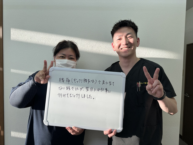 「ギックリ腰がすっかり良くなり、今は会社にも楽しく行けるようになりました!」