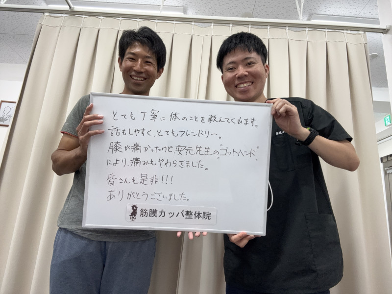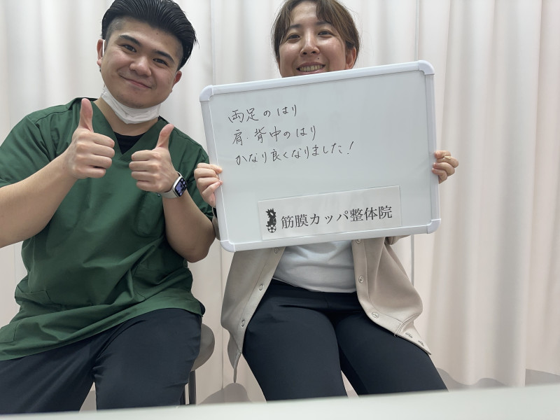Q、なぜ当院を選んだのか。私の施術を一言で。 A、筋膜という言葉は以前から聞いて気になっていたので。親切で的確だと思います!