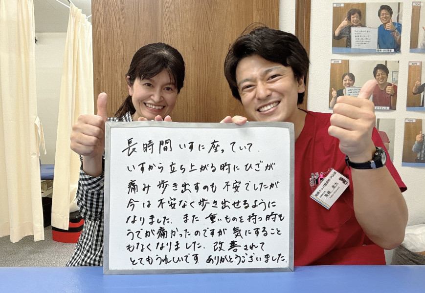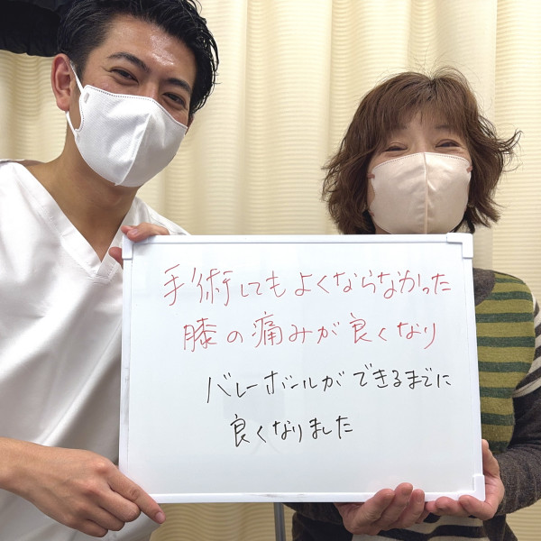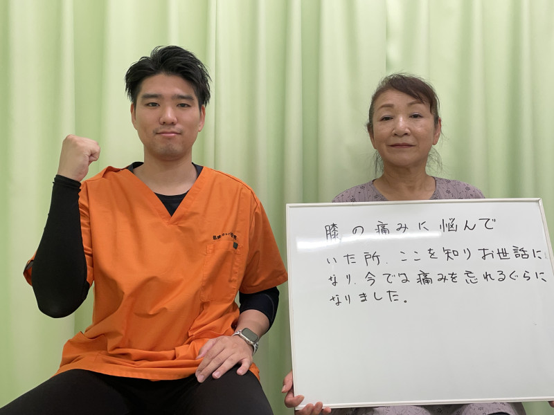 「膝の痛みがなくなり、普通の生活ができるようになりました!感謝」