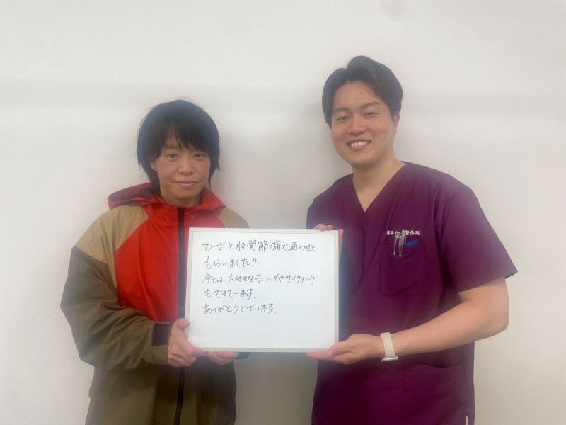 「膝痛があり、歩くのが辛くて大変でしたが、今はだいぶ良くなりました!」