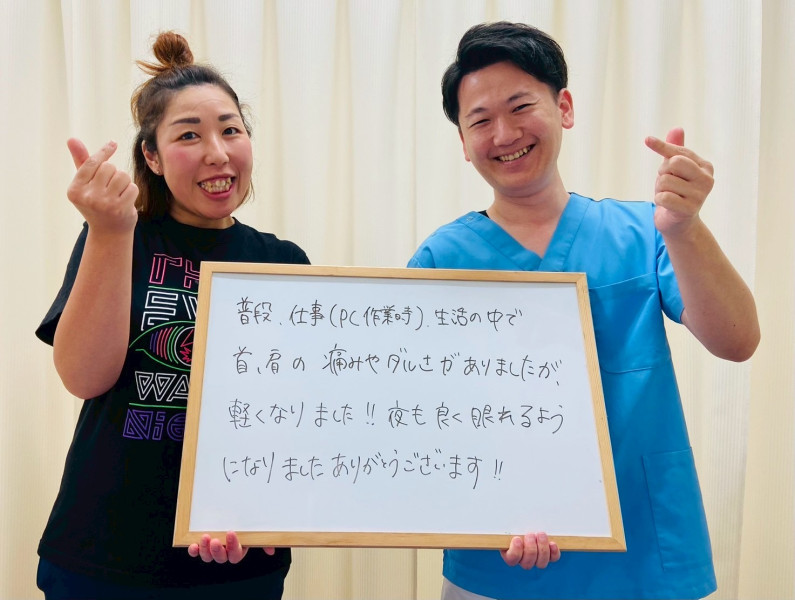 「首、肩の痛みや怠さがありましたが、軽くなり、夜もぐっすり眠れるようになりました!」