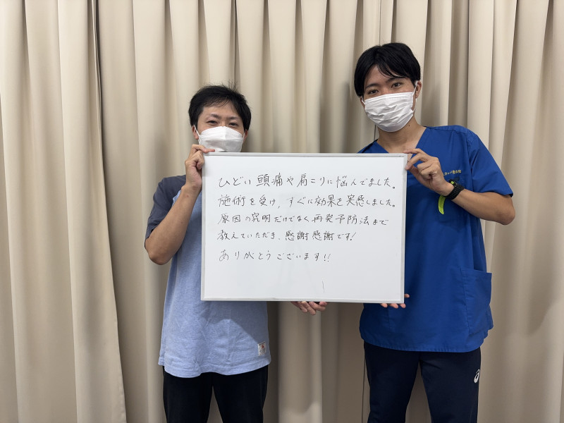 「ひどい頭痛と肩こりで悩んでいましたが施術を受けてすぐに効果を実感しました」IMG_7092 - 筋膜カッパ整体院那覇店