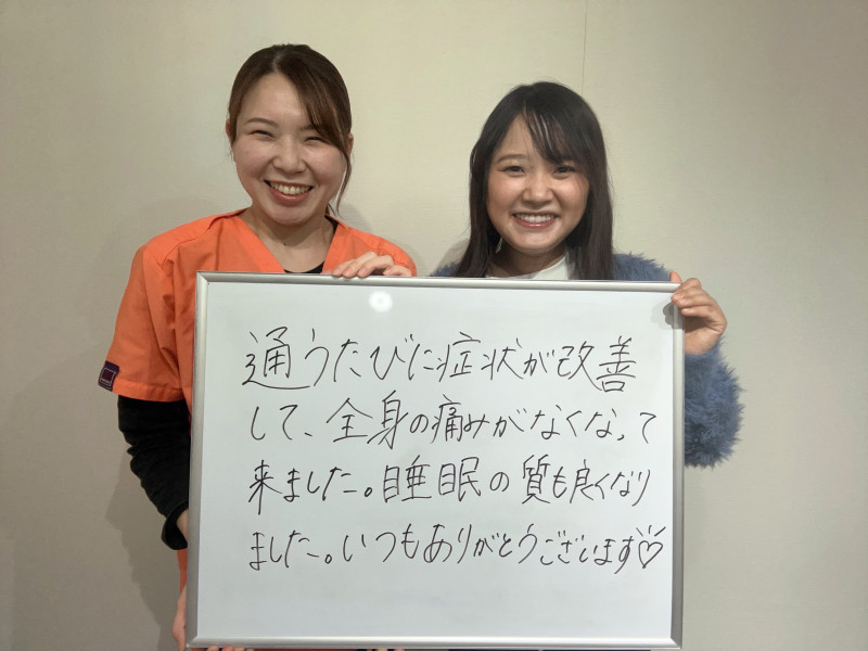 A、説明も分かりやすく、毎回状態を確認し見合った施術を行ってくれる。笑顔がステキ!