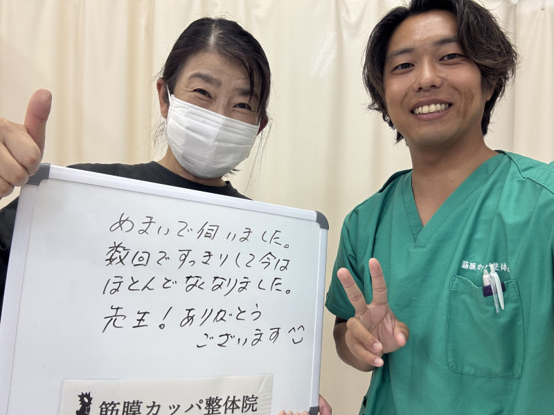 Q、以前のお体はどのような状態でしたか。 Q、また、その時のお気持ちはどうでしたか。 Q、その症状によって、家庭生活、仕事、趣味などで煩わしいと思っていることは何でしたか。 Q、それに対して何か対策はしましたか。その効果のほどはいかがでしたか。 Q、以前ここの前に整体とか受けられたことはありますか。それと比べてみて、どのような感じがしますか。 Q、症状の改善などどのような変化がありましたか。 Q、なぜ当院を選んだのか。私の施術を一言で。 Q、あなたと同じような症状でお悩みの皆様へメッセージがありましたら教えてください。 (かなちゃん様) ※効果には個人差があります |