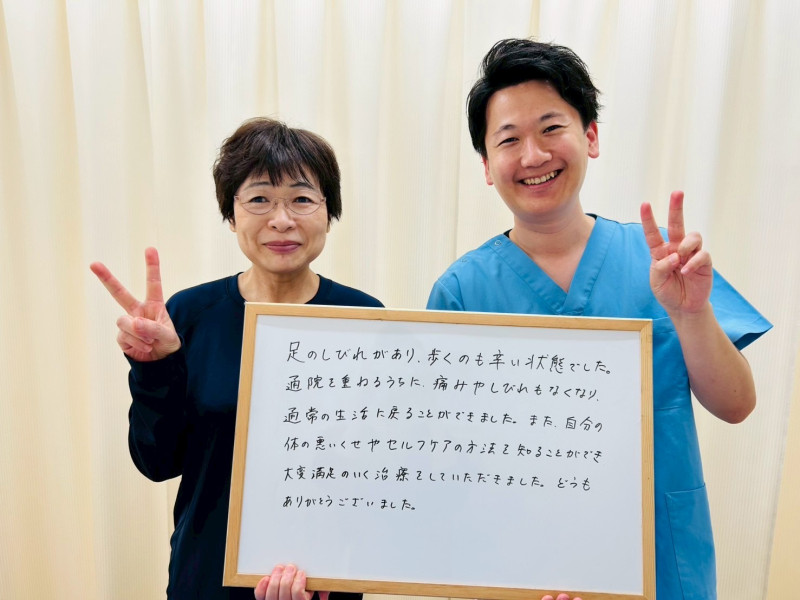 「太ももの痛みと足の痺れがあり、辛かったですが、改善されてとても楽になりました!」