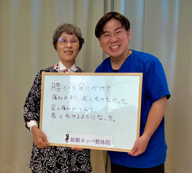 「腰から足にかけての痛みがとれ、長く歩けるようになりました!」
