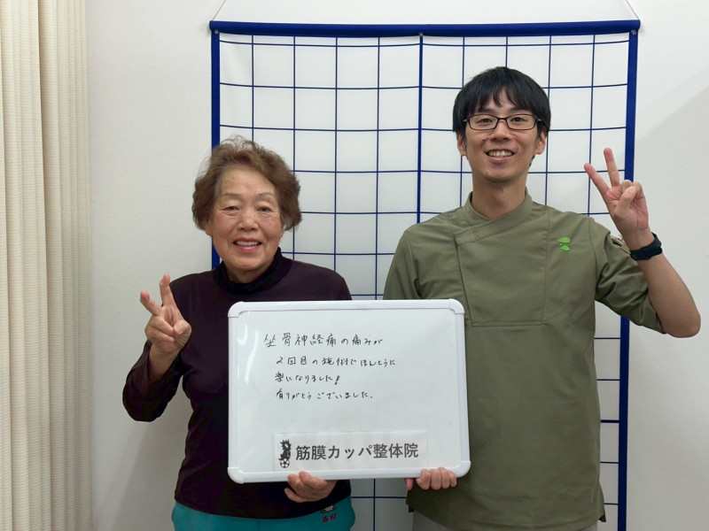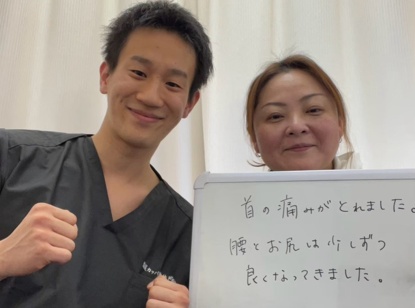 股関節、腰の痛み止めの薬は3Tから1Tに、湿布は必要なくなりました。全身リラックスし熟睡できるようにもなり、佐々木先生には感謝の気持ちでいっぱいです。ありがとうございました。 8月13日から11月14日迄のわずか3か月(1回60分)の間に、歩くこともままならなかった私の身体が、別の私に変身した様にさえ感じています。これはひとえに研究熱心な佐々木先生の施術のお陰様と心より感謝申し上げております。 佐々木先生はご家族を大切にされご自身の専門分野で研鑽を重ねてこられている、プロ意識の高さに、いつも頭が下がる思いでおりました。 どうぞこれからも先生ご自身のお体を大切にされながら、助けを求めてこられるクライエントさんの力になってあげて頂きたく存じます。 筋膜カッパ整体院さんは私にとって駆け込み寺です。お世話になりありがとうございました。