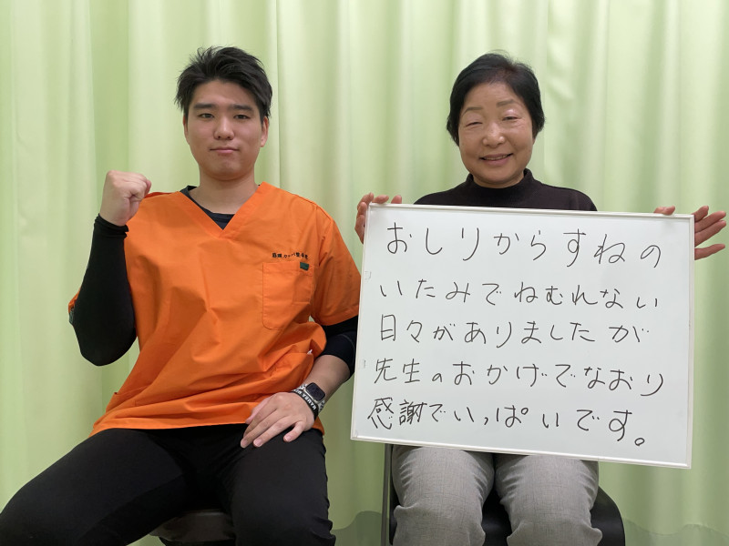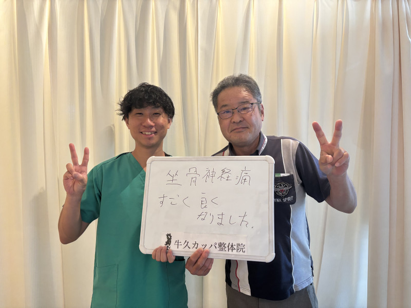 「坐骨神経痛が改善し,車の乗り降りや屈み込みが楽になりました!!」