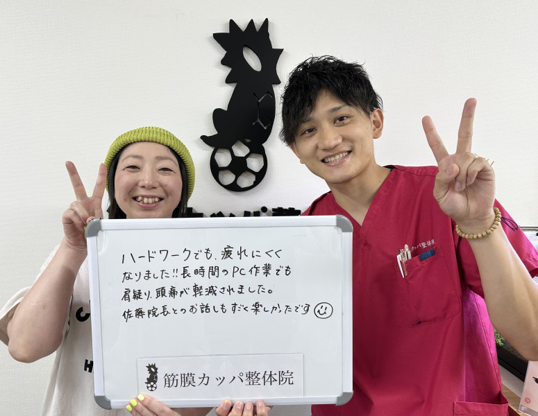 「頭痛や肩こりが改善されて、薬を飲まなくても仕事にいけるようになりました」